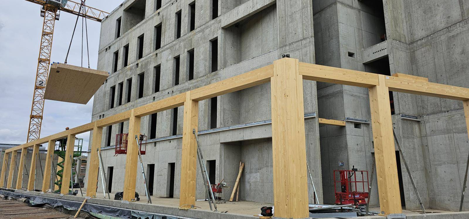 Hybrid-Flachdecke m. Brettschichtholzdielen